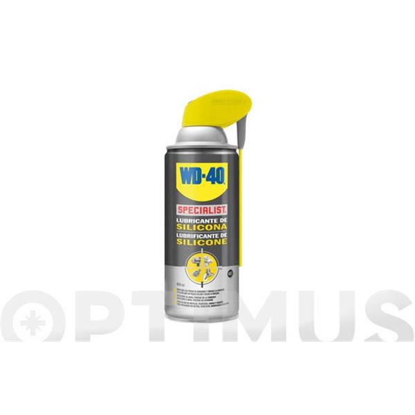 "El WD-40 Specialist Lubricante de Silicona es ideal para la lubricación de plásticos y gomas sin dañarlas. Desplaza la humedad y proporciona una excelente lubricación y protegiendo, alargando la vida útil de sus herramientas y equipos. Su fórmula enriquecida con SIlicona ofreceuna gran protección de la humedad y abrillanta plásticos y gomas. Fórmula con certificación NSF H2 apta para usarse en maquinaria que no esté en contacto directo con alimentos en la industria alimentaria. Recomendaciones de uso El spray es a base de silicona, perfecto para eluso en piezas de goma, como por ejemplo tuberías, juntas de ventanas,accesorios de fontanería y correas. Se puede utilizar en metal, plástico y madera, sin que deje manchas. Además de proteger las superficies, herramientas y máquinas contra la oxidación, también repele el polvo, la suciedad y el aceite. Modo de uso Aplica el producto en la superficie que quieras lubricar y proteger y dejar secar. Diseñado parafuncionar bajo todas las condiciones meteor