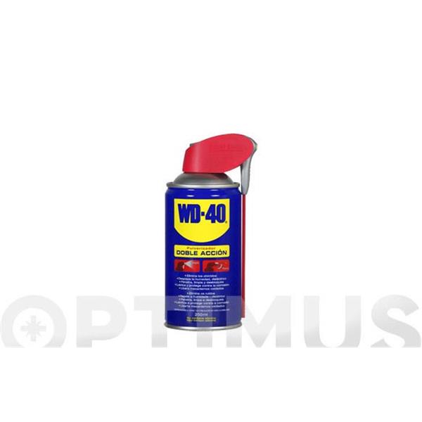 "El innovador cabezal del formato WD-40 Producto Multi-Uso Doble Acción te permitirá aplicarlo de una forma amplia o precisa en tan solo unclic. Además evita la perdida de la cánula. Aplica la mágica fórmulaoriginal de los 2.000 usos de una forma cómoda y sencilla. Lubrica Lubrica piezas en movimiento tales como bisagras, rodamientos, cadenasy engranajes. Abrillanta Limpia cromados y cualquier superficie metálica, eliminando también adhesivos, grasa, suciedad y restos de pintura. Desplaza la humedad Desplaza la humedad de cuadros eléctricos, bujías y cualquier conexión eléctrica. Afloja Penetra y libera piezasatascadas y oxidadas como tuercas, candados y pistones. Protege Protege contra el óxido y la corrosión. "