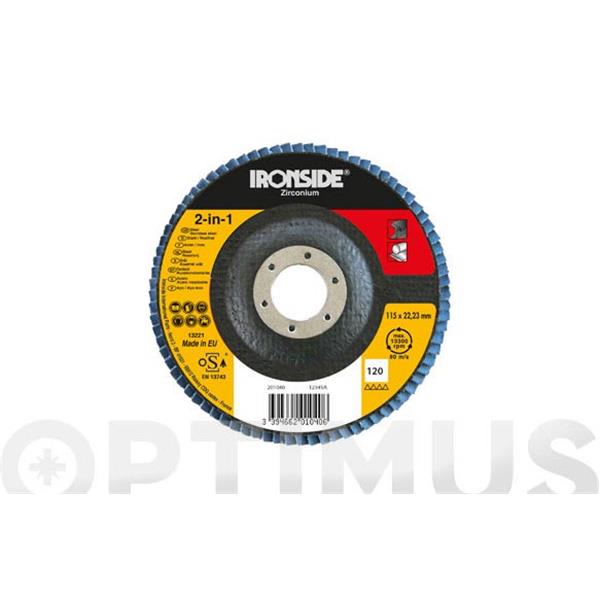 DISCO LAMINAS ZIRCONIO Ø 115 MM GRANO 120 , 72 LAMINAS, LONG LIFE IRONSIDE