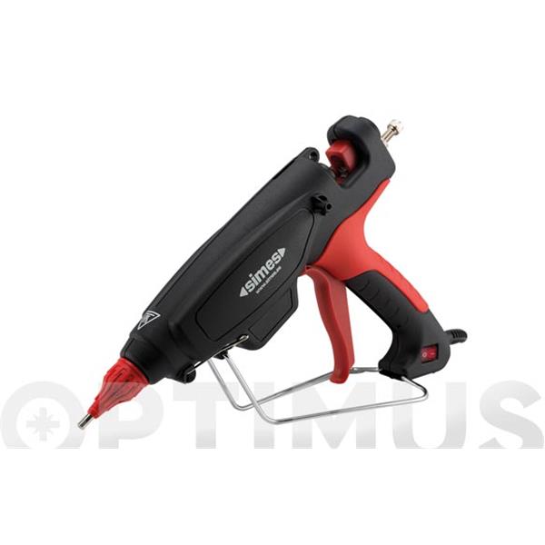Pistola termoencoladora profesional con gatillo ergonómico para barras de 12mm de diámetro. Precalentamiento entre 3 y 5 minutos. Temperatura de trabajo entre 140ºC y 230ºC.