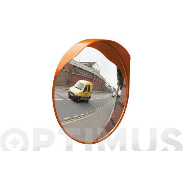 Espejos Convexos Interior Exterior Ø45cm. Policarbonato con armazón de polipropileno naranja. Incluye soportes para anclaje. Orientable.