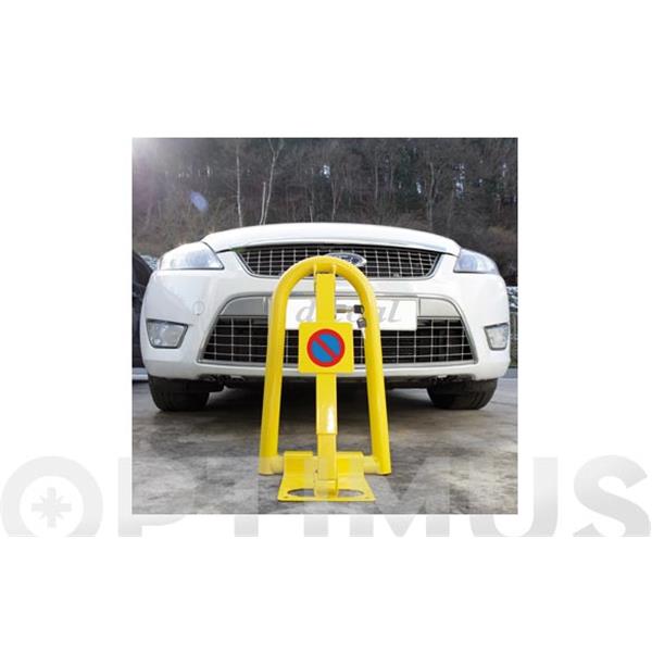 Barrera de Parking plegable. Para proteger su plaza de aparcamiento. 30 x 50 x 27 cm. Cerradura de seguridad lateral. Fácil de instalar confijaciones incluidas. Pegatina de prohibido aparcar. Color amarillo