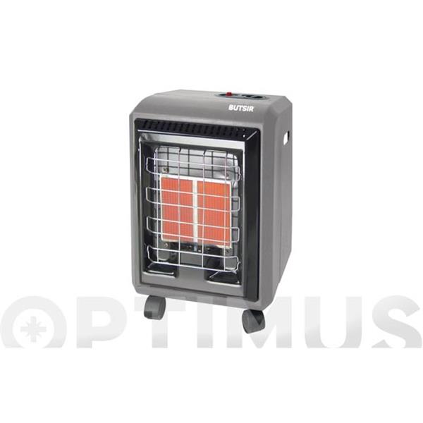 ESTUFA MINI BUSTIR GRIS. 3000WEstufa compacta par botellas de gas de hasta 3 kg.Encendido piezo eléctrico y doble sistema de seguridad, Ruedas multidireccionales. Requiere grifo regulador de 28gr (no incluido).