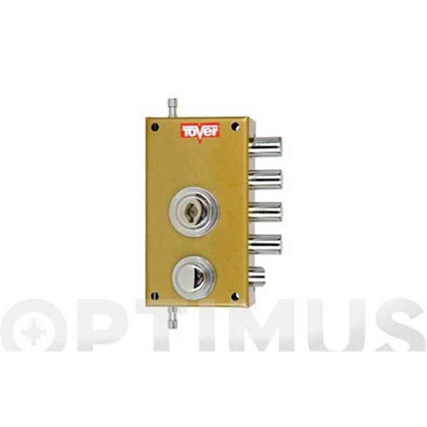CERRADURA SOBREPONER CON VARILLAS GOLPE Y LLAVE 40/D ESMALTADA ORO TOVER