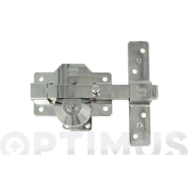 Cerrojo de sobreponer. Reversible. Cilindro redondo Ø 30 mm exterior.5 llaves de puntos. Pulsador interior. cromado
