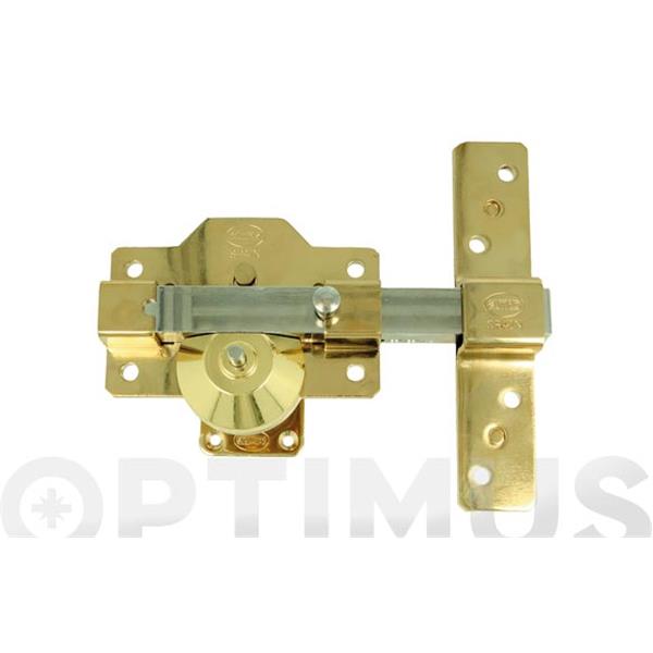 Cerrojo de sobreponer. Reversible. Cilindro redondo Ø 30 mm exterior.5 llaves de puntos. Pulsador interior. Dorado