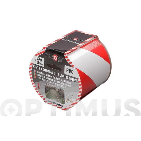 CINTA ADHESIVA DE SEÑALIZACION 33 MT X 100 MM BLANCA/ROJA TARGET