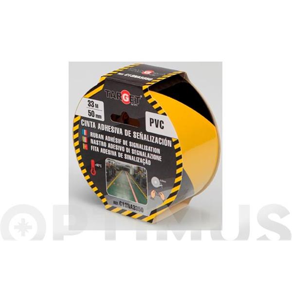 CINTA ADHESIVA DE SEÑALIZACION DE 33 MT X 50 MM AMARILLA Y NEGRA TARGET FUERTE PARA SUELOS