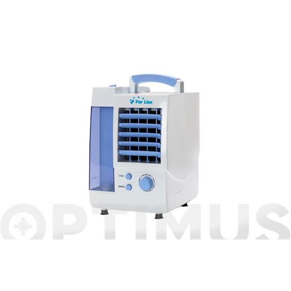 Tecnología: Climatización por humidificación del ambiente. Consumo: 60 W.Caudal: 200m3/h .Panel Evaporativo de Celulosa. Capacidad del depósito: 1 Litro Velocidades: 3 Oscilación automática de las lamas Compacto y portátil, con asa detransporte. Dimensiones producto (LxPxH): 20 x 23 x 3 0 c