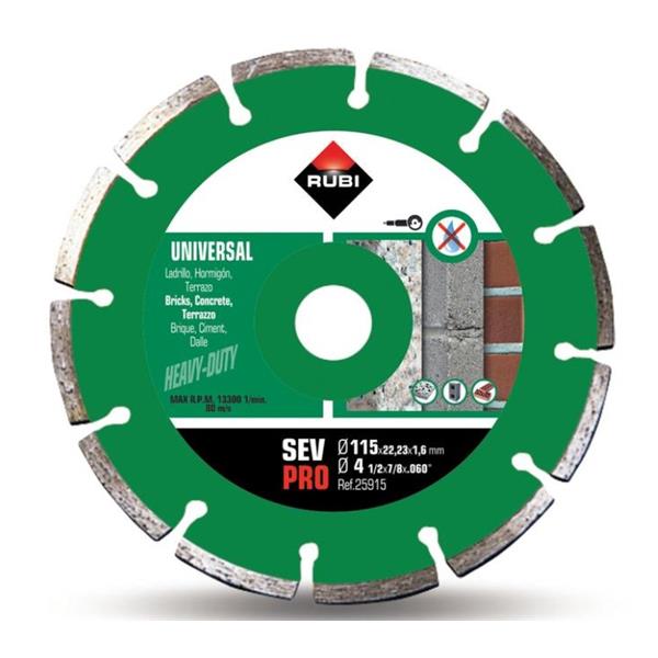 DISCO DIAMANTE CORTE SECO GENERAL OBRA SEGMENTADO Ø 115 MM PRO RUBI