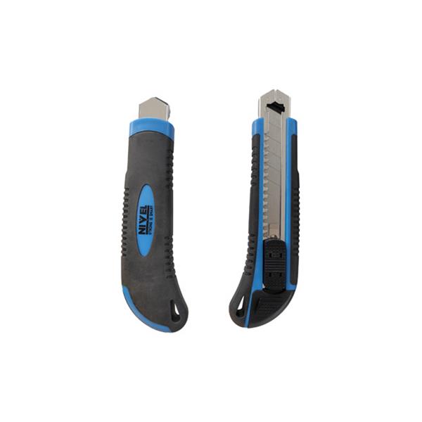 CUTER 18 MM BIMATERIAL AUTOBLOQUEO, INCLUYE 3 CUCHILLAS NIVEL