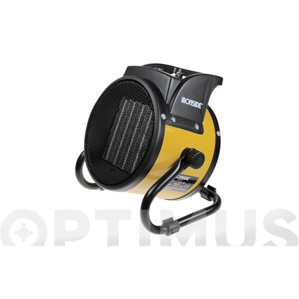 Potencia: 25 W / 1000 W / 2000 W Tensión: 220 - 240 V / 8,7 A Termostato autorreseteable: 65ºC Caudal de aire: 158 m³/h Recomendado para 40 m³ Tamaño: 160 x 210 x 217 mm.