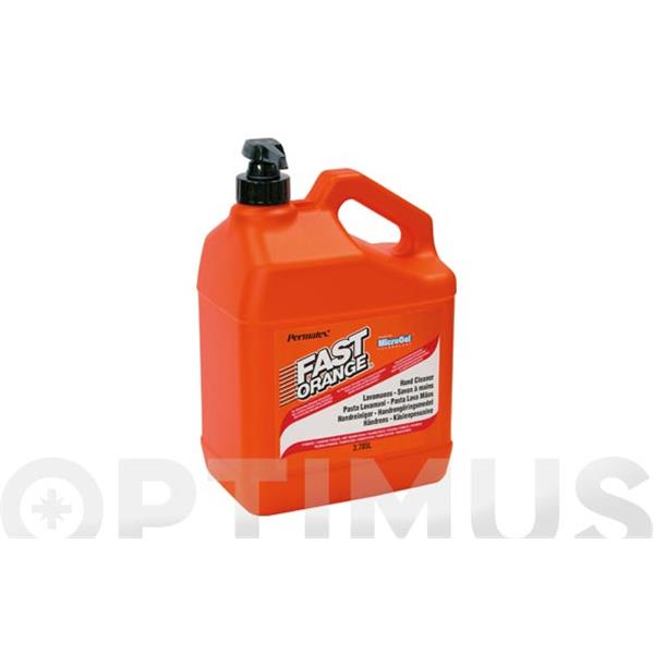 LAVAMANOS FAST ORANGE Lavamanos industrial de uso directo. Gran poder de limpieza en seco (sin necesidad de agua). Limpiador natural biodegradable. No contiene disolventes del petroleo. 3,78 litros.