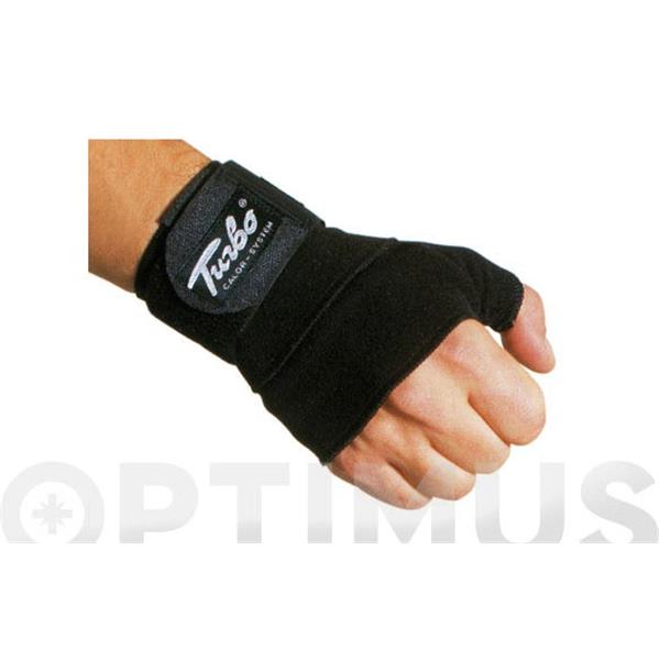 Indicada para traumatismos de la muñeca y la mano. Incorpora ajuste enpulgar. Perfecta para movimientos de cargas pesadas, protección de casos de tendinitis o dolores crónicos de la muñeca. Consigue un efectocalor con aumento de hasta 2º C e incrementar el riego sanguíneo. Composición: 65% Caucho , 18% poliamida , 17% algodón