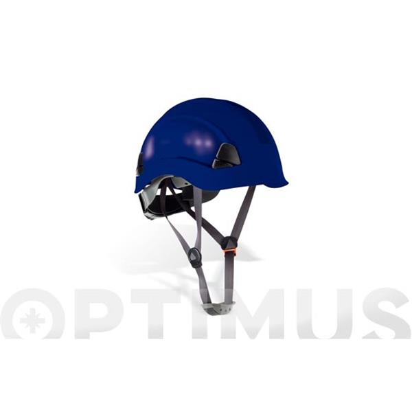 EOLO". Casco de protección para trabajos en altura. Características: Casco de protección para la industria (EN397) Casco eléctricamente aislante para instalaciones de baja tensión (EN50365). Fabricado en ABS (termoplástico de gran tenacidad dureza y resistencia química y a impactos). Muy ligero y confortable. Cierre mediante ruleta que regula el contorno de 52 a 63 cm. Arnés interior textil con banda antisudor y arnés en tela con 6 puntos de anclaje. Hendidura estándar (3 mm) para acoplar orejeras de protección auditiva. Barbiquejo bifurcado con mentonera de silicona. Resistencia a bajas temperaturas (-30ºC). Peso: 350 gr.