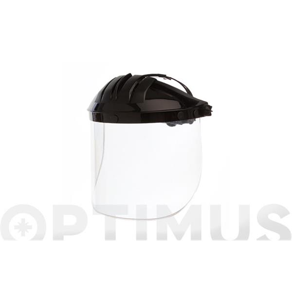 Diseñada para ofrecer una efectiva protección contra el riesgo de impacto de partículas a alta velocidad y media energía y como protección contra gotas y salpicaduras de líquidos. Resistencia a la radiación UV. Material: Visor de policarbonato incoloro. Clase óptica: 1. Medidas: 400 x 200 x 1,5 mm. Talla atalaje: 56- 64 cm. Resistencia mecánica (B). Recambio visor código QF+ 9703124.