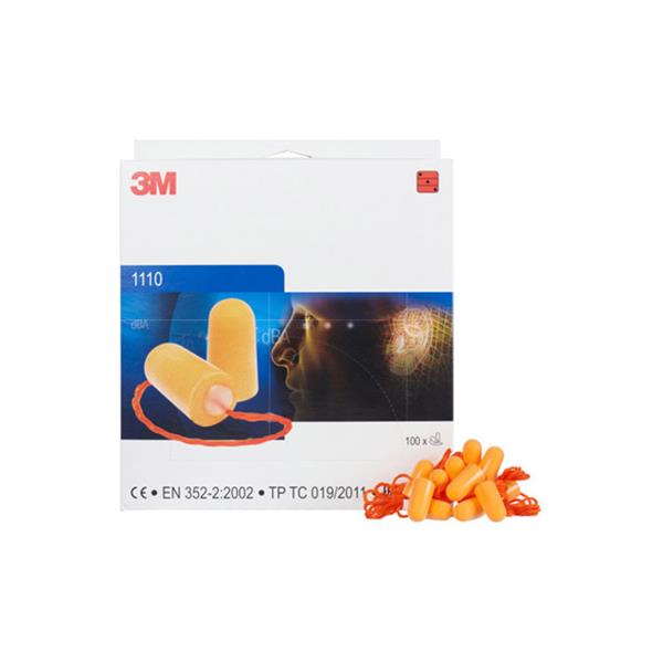 CAJA TAPON AUDITIVO DESECHABLE 200 PARES CON CORDON SNR 35 DB REF. 1110 3M