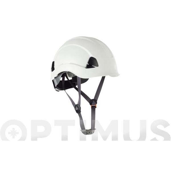 "EOLO". Casco de protección para trabajos en altura. Características:Casco de protección para la industria (EN397) Casco eléctricamente aislante para instalaciones de baja tensión (EN50365). Fabricado en ABS (termoplástico de gran tenacidad dureza y resistencia química y a impactos). Muy ligero y confortable. Cierre mediante ruleta que regula el contorno de 52 a 63 cm. Arnés interior textil con banda antisudor y arnés en tela con 6 puntos de anclaje. Hendidura estándar (3 mm) para acoplar orejeras de protección auditiva. Barbiquejo bifurcado con mentonera de silicona. Resistencia a bajas temperaturas (-30ºC). Peso: 350 gr