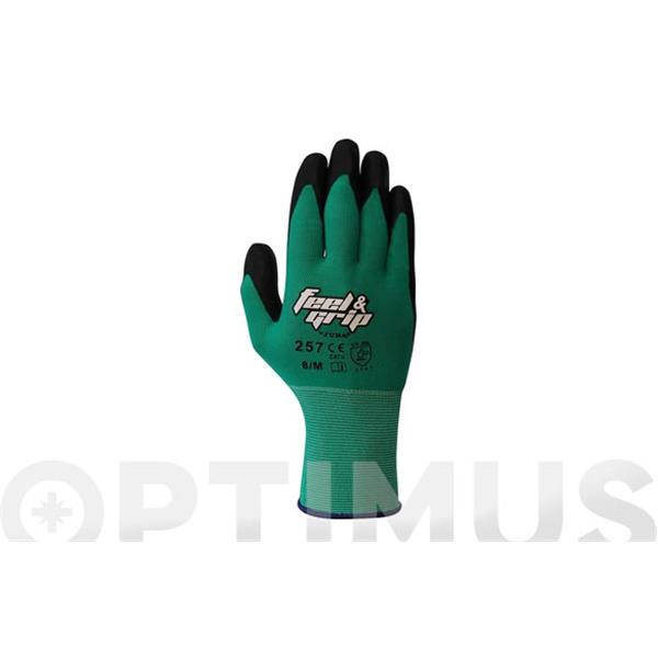 GUANTE "FEEL&GRIP" DE NYLON RECUBIERTO DE LÁTEX CON TECNOLOGÍA ANR EN PALMA COLOR VERDE/NEGRO CARTONCILLO H257/8 JUBA