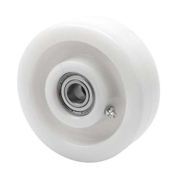 Ref. 4-0015 Fabricadas según normas europeas EN 12532/12533. Datos técnicos Diámetro: 200 mm Capacidad de carga: 1000 kg Tipo de cojinete: Cojinete de bolas Ancho de Banda de rodadura: 42 mm Rueda FT (Nylon) Rueda de nylon extrafuerte Rango de temperatura: -30º a +80º.