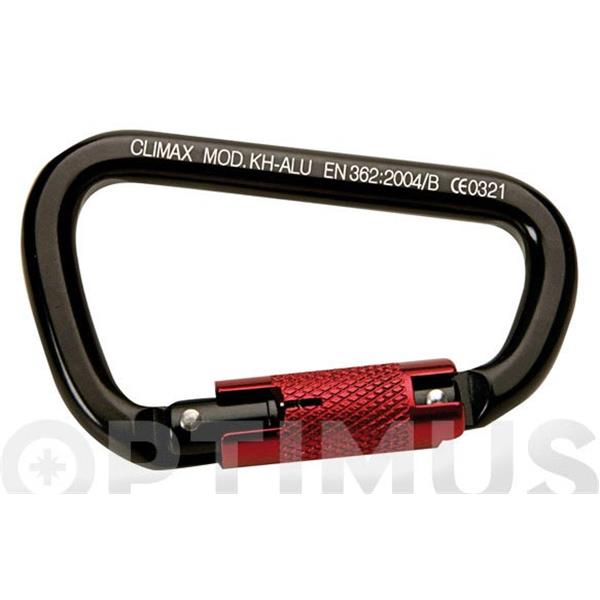 KH-ALU. CONFORME A NORMA EN 362. Conector asimétrico de aluminio. Cierre automático 1/4 de vuelta. Triple seguridad. Su forma de pera permite aseguramiento con un nudo automático.