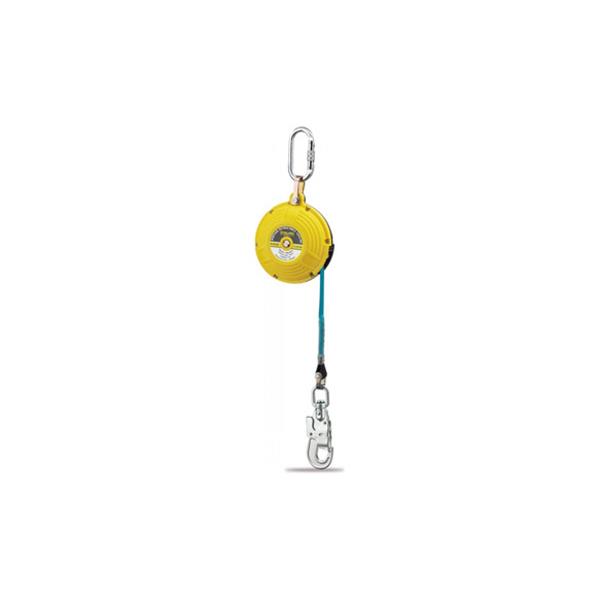 Muy ligero y compacto. Carter fabricado en ABS, muy ligero pero de gran resistencia a impactos. Mosquetón de acero y mosquetón anti-vueltas (evita la torsión y rotura de la cinta), con indicador de caída. Peso dispositivo: 2 kg. Peso máximo usuario: 140 kg. Incluye cuerda para bajar mosquetón al arnés una vez colocado en altura el dispositivo. Usos y empleo: en actividades con riesgo de caída en altura, y en particular trabajos que requieran libertad de movimientos para el usuario, en actividades relacionadas con la construcción, mantenimiento de fachadas, torres, industria, refinerías, plantas generadoras, montajes, trabajos sobre plataformas y camiones cisterna, etc.