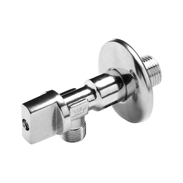 Las válvulas de escuadra se usan para cortar de manera individual el suministro de agua en sanitarios como fregaderos, inodoros, pequeñas cisternas, electrodomésticos, etc. La construcción interior de polímero antiadherente, alarga la vida de la válvula en lugares con porcentaje altos de cal en el agua. Fluido: en agua fría y caliente. Temperatura de uso de -10 a 90ºC Presión nominal 10 bar (150 PSI). Roscas según ISO 228/1 (DIN259) Cierre rápido (1/4 de vuelta) Doble junta tórica NBR para asegurar su estanqueidad. El mecanismo de apertura y cierre de la válvula está compuesto por un polímero con capacidad para evitar que la cal se adhiera a su superficie. Cuerpo de latón cromado CW617N (UNE EN 12165) Florón de acero inoxidable. Mecanismo de cierre de polímero antical.