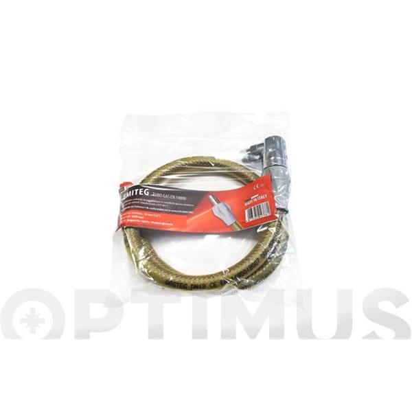 TUBO CONEXION ESPIROMETALICO Tubo 1m de acero inoxidable austenitico AISI 304 para cocinas y encimeras de gas con valvula de seguridad con manguera de proteccion ignifugo de PVC amarillo. De acuerdo con la normativa europea EN 14800:2007