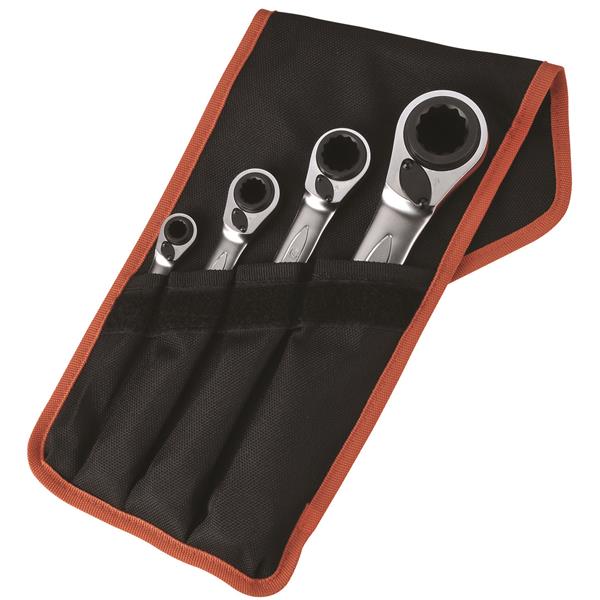• Giro rápido del fijador mediante la acción de trinquete con 4 tamaños por llave.