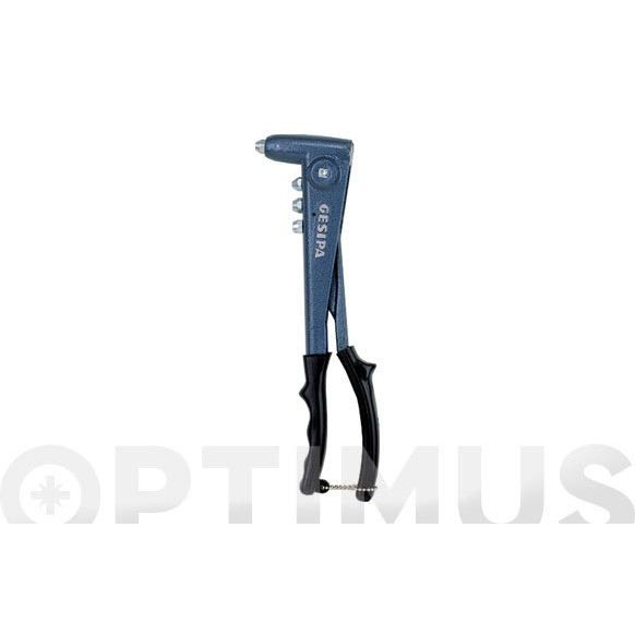 Capacidad de remachado hasta 5 mm en Aluminio y 4 mm en acero. Palanca equipada con resorte de apertura, permite la expulsión automáticadel vástago.