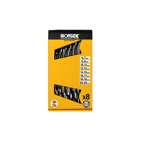 JUEGO LLAVES BOCA DOBLE 8 PIEZAS DE 6X7 A 20X22 MM IRONSIDE