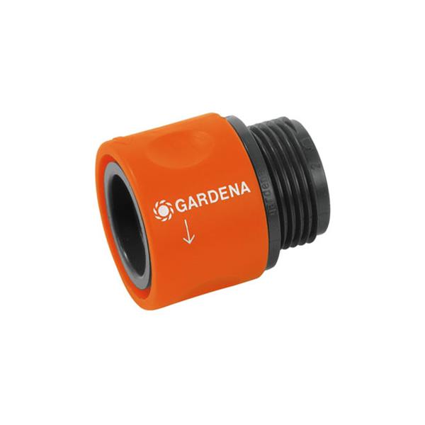 El conector de rosca de Gardena sirve para conectar la conexión de manguera al macho para grifo. La conexión solo se puede liberar mediantetorsión. 3/4".