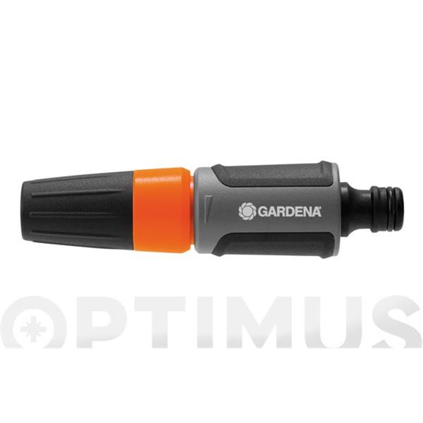 En la lanza de limpieza GARDENA la boquilla es el modelo classic. Ya sea para la limpieza o el riego, se puede elegir cualquier fuerza chorro de agua de chorro duro a bruma. El manguito de la boquilla no se puede quitar y por lo tanto no se pierde. Es infinitamente regulable la pulverización de agua. Puede elegir el modelo ideal para su aplicación. Gracias al elemento de plástico blando, la boquilla también se ajusta bien en la mano y no se desliza.