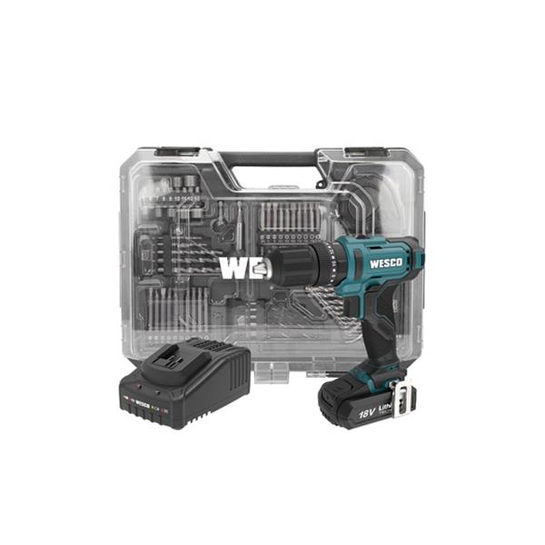 TALADRO PERCUTOR 18V, 50NM 2 BATERIAS 2.0 AH, CARGADOR Y 75 ACCESORIOS WESCO