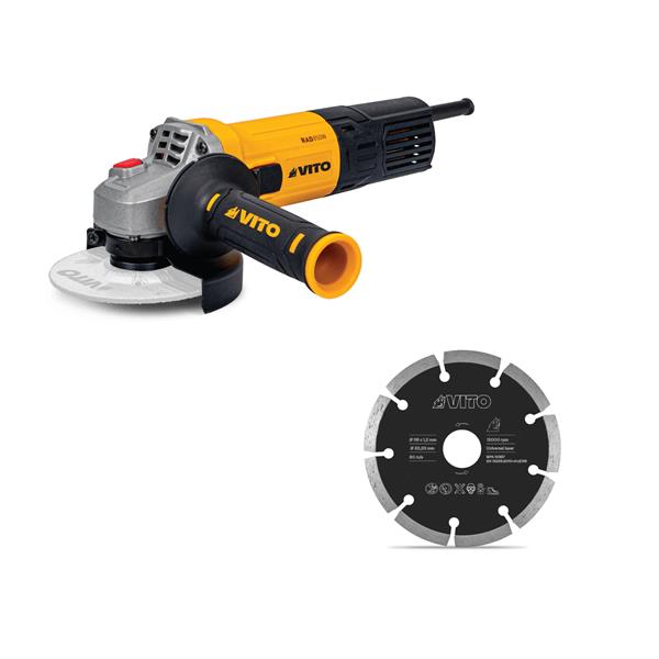 Amoladora con potencia de 850W, con una velocidad de rotación en vacío de 11000 rpm,