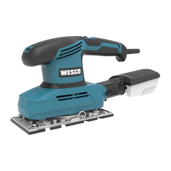 Lijadora orbital 240w. Tamaño base 90x187mm. Con agarre de goma moldeado, sistema de recogida de polvo, base de aluminio. Adaptador de extraccion de 32mm.