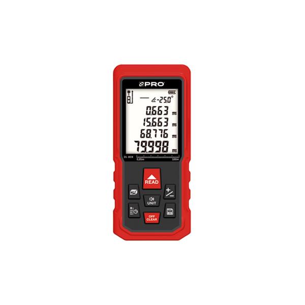 Mediciones de distancia mediante láser hasta 60m. Unidades de medición: mm/pulgadas/pies. Resolución: 0.001 m (1 mm) Precisión: ñ 2 mm Nivel electrónico y medición de ángulos. Funciones de medida de área y volumen. Con memoria: almacenamiento interno de medidas.
