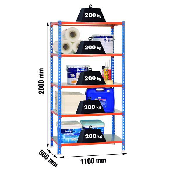 ESTANTERIA METAL 5 ESTANTES METALICOS SIN TORNILLOS 2000 X 1100 X 500 MM AZUL/NARANJA 200 KGR POR ESTANTE