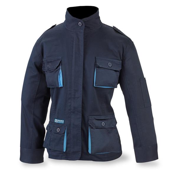 Ref. 588-MCLCazadora/chaqueta algodón especial Mujer en azul marino con detalles en azul celeste, bolsillos adicionales de la talla L.